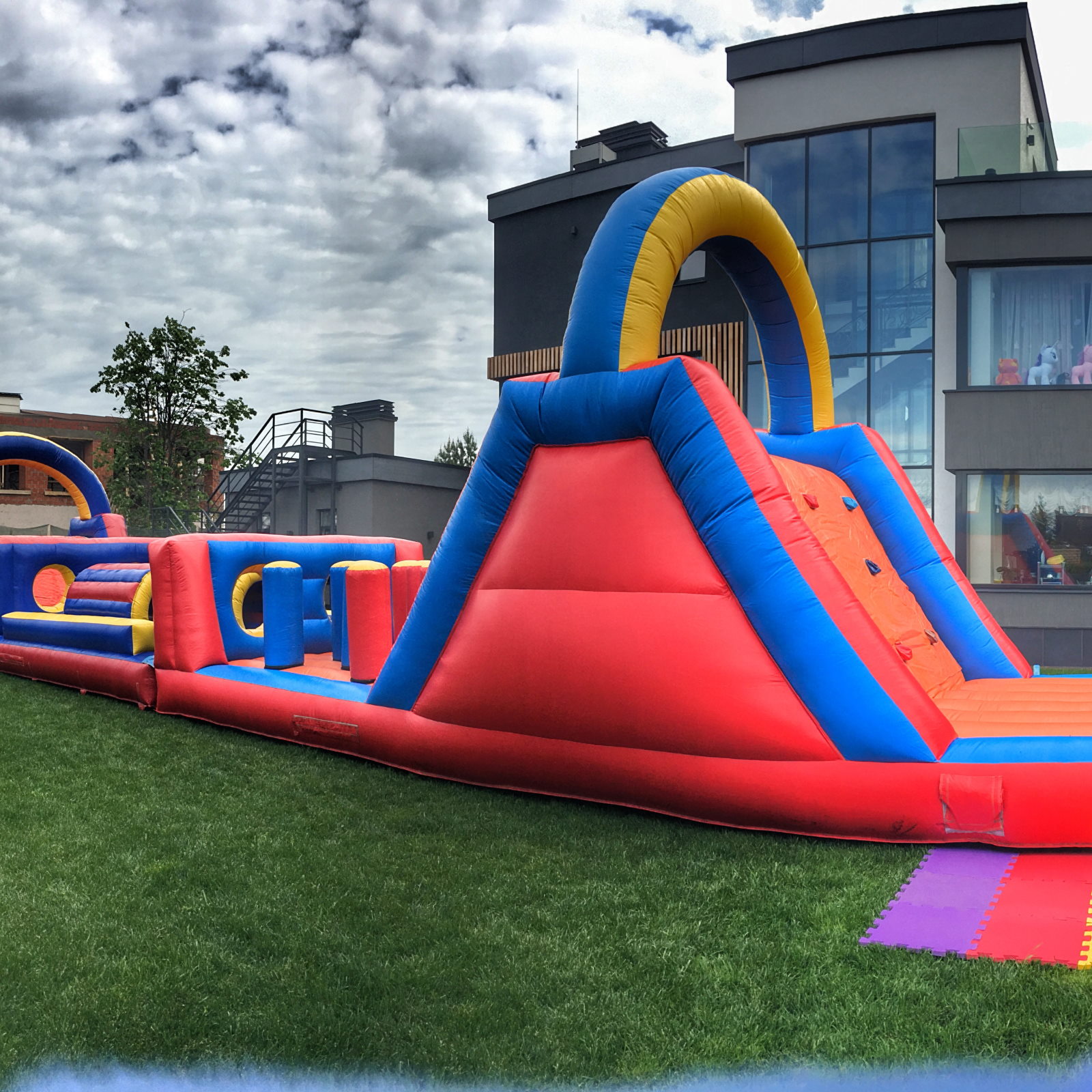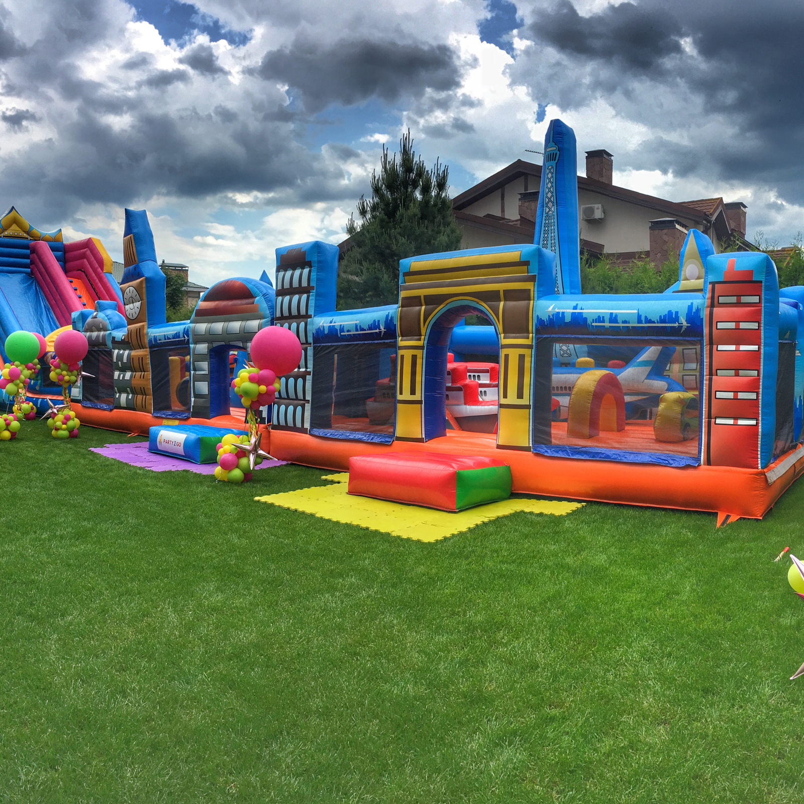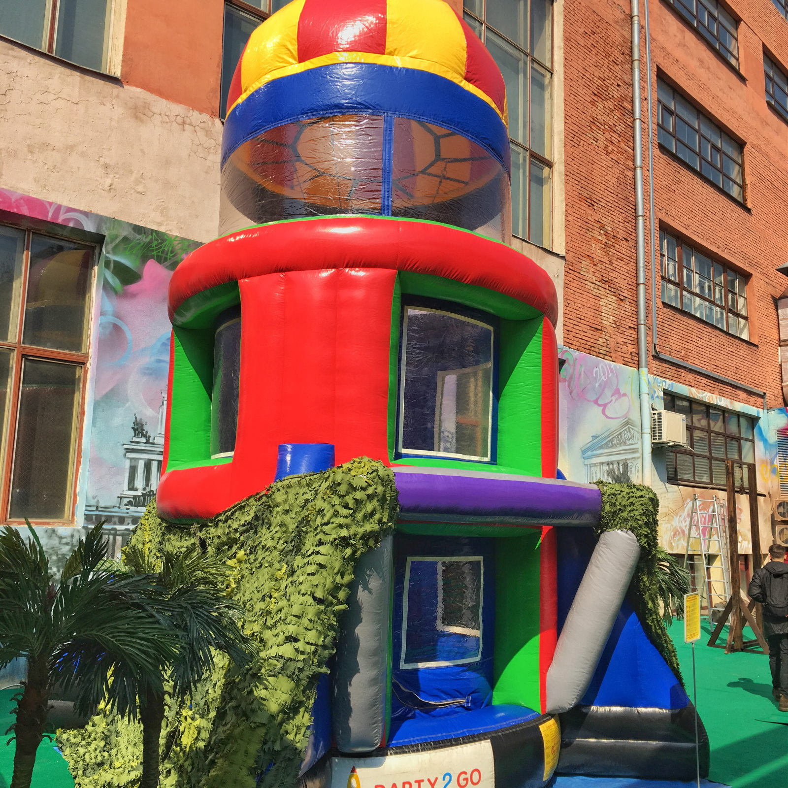 Выполняем монтаж аттракциона согласно ГОСТ Р 55515-2013 с соблюдением всех правил техники безопасности при эксплуатации надувного оборудования.